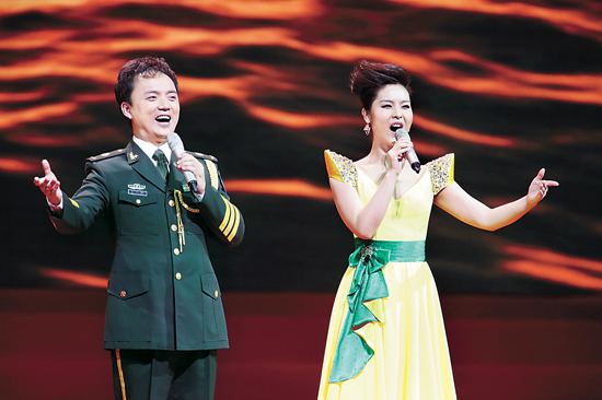 王丽达领唱全体演员合唱《向着太阳歌唱》