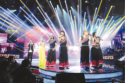为创新办节形式,本届民歌艺术节以“民歌选秀”的形式助推民歌的普及与发展,推出了“一声所爱·大地飞歌”2012民歌大赛,反响十分热烈。9月21日晚,在广西体育中心举行的开幕晚会将首次推出360度全景开放舞台,为观众带来全方位视觉冲击。图为“一声所爱·大地飞歌”2012民歌大赛决赛现场。