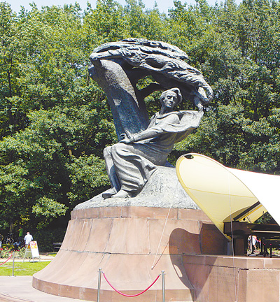 照片为华沙肖邦公园内的肖邦雕塑 人民日报记者 刘水明摄