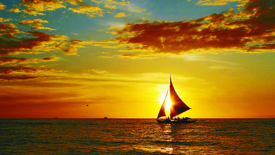 孤帆远影 长滩岛上,傍晚时分,看着远处归航的帆船,不禁令人想起“浮云游子意,落日故人情”的诗句。余爽(外交部机关党委国外局)摄于菲律宾