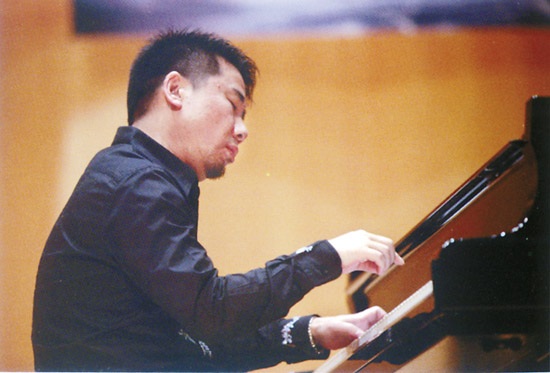 “从20世纪至今,爵士体系是非常重要的现代音乐体系,在西方这早已属于完善的传统音乐教学,而我们的孩子们至今想学没地儿学。国内音乐学院主流的音乐教育还是以古典主义和近现代浪漫主义为主,没引入教育体系,想玩儿爵士只能自学。”金佛现在正用他独特的“师父带徒弟”的教育方式带着他只有13岁的“得意门生”阿布亮相各种现场演出。金佛说,“阿布有一定的古典基础。实际上,他对爵士这种语言的技巧把握很好,但演奏时情绪色彩现在还无法体现太多。我希望他打好基本功,把古典融到爵士乐里。爵士是融合的音乐,我希望这个孩子一开始就有国际视野,所以让他尽可能多地学习不同乐种,比如拉丁爵士、古典爵士等,如果他愿意我还要指导他学习中国民乐。虽然刚开始他只是模仿,有了阅历,慢慢就会有色彩,懂得爵士的情绪。希望阿布能成为今后中国爵士钢琴的领军者,影响并带动更多的孩子爱上爵士演奏。”