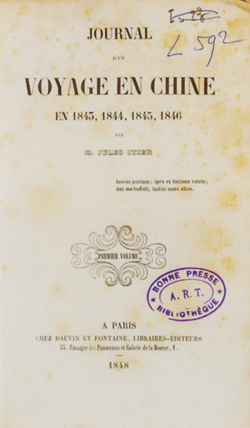 于勒·埃迪尔1843年至1846年在华旅行日记第一卷