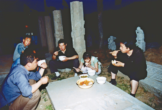 沉重的石器需要用吊车起动;装了车还要铺上柴草树枝,遮人耳目。等到夜深人静,晚12点从村里出发,把货送到高陵等地,下半夜三四点钟就能赶到西安,把它们运送到长安郭杜的秘密库地。
