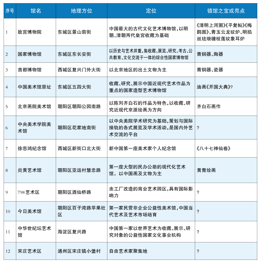 相比之下,表中列举的北京具代表性的美术馆中,历史最长的为1925年建立(故宫博物院),还不到百年,最年轻的发展于近10年。这意味着在美术馆的管理和经营等方面,中国都还处于比较原始的状态。不难理解,无论是美术作品还是美术家,对于我们的大众来说都显得十分模糊。