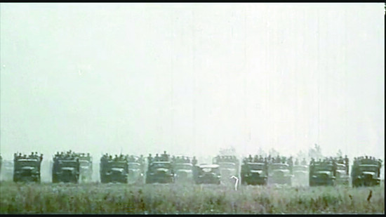 随即,李前宽给记者讲解了《开国大典》中的一个经典镜头的创作过程。电影《开国大典》中毛泽东同志率领中共中央机关进入北平路上与其女儿的一场对话,在旁人看来不过是一场过场戏,但就是这场戏让李前宽费了不少脑筋。在他看来,这并不是简单的过场戏,正是在这一时刻,标志着一个时代的开端,也正因如此,不能在拍摄对话时用镜头找人。李前宽左思右想,小时候躺在海边听浪的画面不止一次出现在了他的脑海中,他认为中共中央进驻北京是历史的潮流,应该像海浪一样汹涌,势不可挡。在这场戏中,他摒弃了细描慢刻的表现手法,而是用大写意的手法表现了历史的恢宏。镜头中气势恢宏的车队横向排开在镜头底部向镜头开来,那气势正向海浪一样势不可挡;画面背景被烟雾虚化,让画面变得更加辽阔,这与海面上辽阔的天空如出一辙;戏中毛泽东和他的女儿并没有出现,他们的对话成了镜头之外的画外音,就像海面上海鸥的鸣叫。在这一刻,李前宽是在用镜头作画。讲述中,记者仿佛眼前再一次出现了电影中的画面,也仿佛看见了李前宽年幼时躺在海边听浪的画面。
