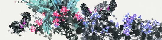 近日,由中国国家画院、广东省文化厅主办的“天心赐意——谢天赐大写意花鸟画作品展”在中国国家画院美术馆举行。此次画展汇集了谢天赐近年新作100余幅,其中包括十几幅高2.5米、宽近5米的大画,全面展现了画家在写意花鸟画继承、创新方面取得的成果。中国美协主席刘大为点评道:当代写意花鸟画家谢天赐,其作品中的写意精神是十分突出的,他用笔大气、率意,用墨淋漓、酣畅,体现了一种源于生命的元气、笔势的美感和墨色的韵致,在画面中营造了近乎抽象感觉的意象之美。
