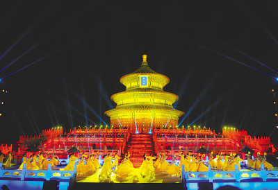 4月16日,第三届北京国际电影节在天坛开幕。图为演员在第三届北京国际电影节开幕式上演出。新华社记者 罗晓光 摄