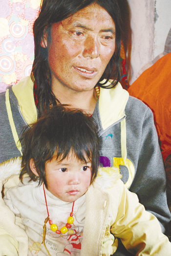 康定塔公县村子里最优秀的即兴舞者怀抱着孩子