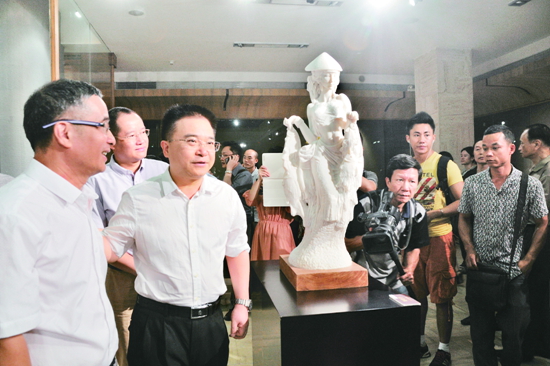 中共广州市委宣传部副部长、市文联党组书记伍第政参观钟志源汉白玉雕塑作品展