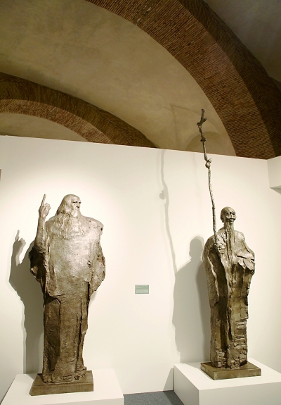 许多观众还记得,2012年11月间,“文心铸魂——吴为山雕塑艺术国际巡展”在威尼斯宫启幕,这组“对话”的雕塑便作为该展览的精神标志立于大厅。另有一组名为《梦中的达·芬奇与齐白石》的作品,将两位老者立在同一艘“船”的两端,默默迎接如潮的观者。