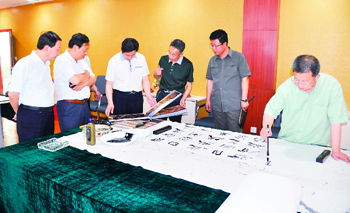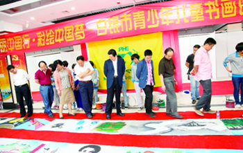 书画名家和白银市领导观摩青少年集体创作长卷