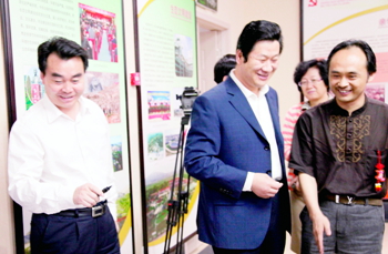 白银市市委书记张智全(中)、市长汪海洲(左)在书画长卷上签字