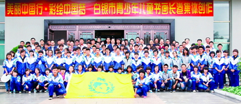 白银市领导和书画名家与参与集体创作的青少年合影留念