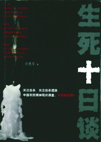 《生死十日谈》以农村自杀现象作为自己的采写对象,对十几桩农民自杀个案逐一进行深入的剖析,条分缕析,理清来龙去脉。由一个个体的死亡辐射到其生活的环境、社会关系,辐射到整个农村社会、乡村、家族、家庭,从中挖掘当事者自杀的缘由,思考自杀现象的社会、家庭、心理、物质和精神的各个层面的原因。很多思考都一针见血,切中肯綮。譬如,作者写到“关系的断裂”、“关系的死亡”是一个人选择死亡最终的原因,如果生命有所附丽,生活有所关联牵绊或维系,那么,一个人的心不死,精神不死,他是不会去自杀的。这样的文本已经超越了文学的范畴,成为了一个社会学、精神心理学、哲学的文本。