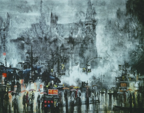 春雨中的曼哈顿 (中国画) 徐 希