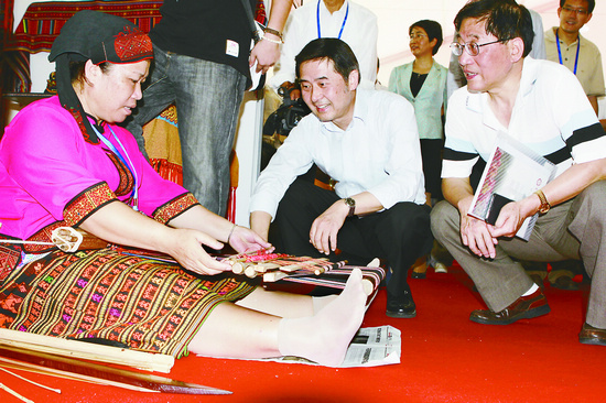 海南传承人黄丽琼现场展示黎族织绵工艺 张志勇 摄