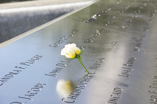 水池外围刻着近3000名“9·11”罹难者的姓名,他们中年龄最大者为85岁,最小者仅两岁,其中400余人是因履行职责而丧生的现场救援人员。这些名字按照“有意义的毗邻关系”排列,反映罹难者在事件中身处何处以及他们与其他罹难者的关系。