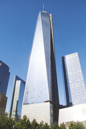 已经基本建成的世贸中心一号大楼高高屹立,为美国第一高楼