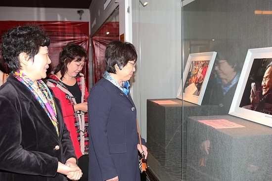 中国世界民族文化交流促进会会长马小玫观看《异彩中华·孝和天下》展览