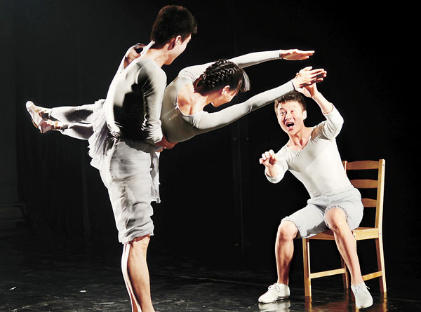 第二年,赵淼就兑现了自己的承诺,他第一次参加了大学生戏剧节。“我写了一个剧本,就一页纸,其实都不能算作一个剧本,没有台词,只是一个舞台提示。当时审批的老师都诧异,‘这也叫剧本?’不过大家还是网开一面,那是我的第一个作品——《6:3》。”在没有排练场地的情况下,赵淼带领团队在北京人艺小剧场的过道里开始了排练。“只是告诉演员不许说话,想说也不许说,看看我们可不可以在不说话的情况下表现出我们要传达的东西。”他们尝试了各种各样的戏剧实验,说出来是什么效果,不说又是什么效果。如果不说看不懂就再加形体动作,直到看懂为止。“后来读研期间我一边实践一边研究,用了三年的时间才弄明白原来这叫‘形体戏剧’,它的理论源自法国的雅克·勒考克,他把英国、法国、意大利等很多国家关于身体、移动、动作的所有理论揉捏在一起凝结为一种理念,但它不同于现代舞的舞蹈剧场以及装置艺术、行为艺术。”