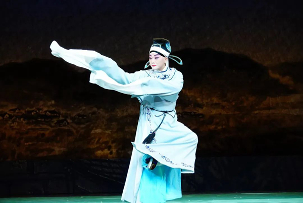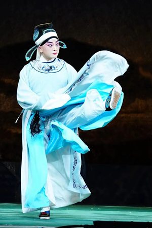 对于叶派小生的表演特点,朱福自己有着深切的体会,即“处处从人物出发,从规定情境中的人物感情出发,刚、劲、宽、亮的嗓音,听起来清脆但不柔媚,刚健但不粗野,高亢激越,抑扬顿挫。叶派小生的身段紧中见稳、紧中显帅,极尽雄姿英发、风流倜傥的风采”。不过,此次他饰演的施佾生与以往叶派小生的代表性形象如周瑜、吕布、罗成、周仁等都不相同。施佾生在人生最为得意的高中、洞房、荣封之时,突然而来命运的大逆转,最亲之人因违背封建礼教一个个死在他的面前,他的椎心之痛无以复加,他的自我毁灭是必然结果。因此,朱福以往的表演经验可供参考,但要准确把握施佾生的极致悲剧命运,并借助叶派小生艺术地表现出来,在表演上自然要下更多的功夫。