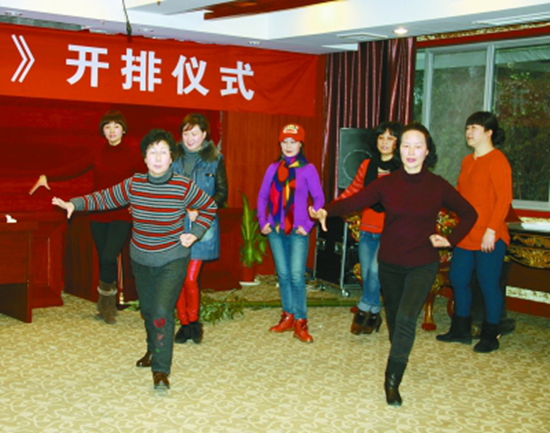 为了演好越剧《清官樊莹》,导演张品珍(前排左)指导演员吴慧君(前排右)排练动作。 严进生 摄