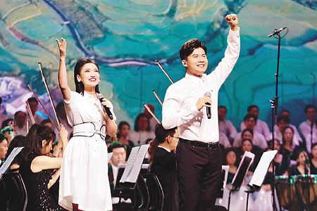 演唱:(从左到右)刘乃奇(中国澳门)、罗钧满(中国香港)、麦震烁