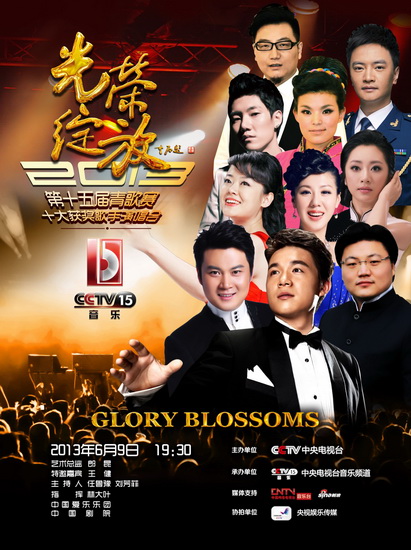 中央电视台音乐频道“光荣绽放”十大系列音乐会《第十五届青歌赛十大获奖歌手演唱会》将于6月9日唱响中国剧院,整场演出的实况录像也将于端午节后在CCTV-15音乐频道全程播出。