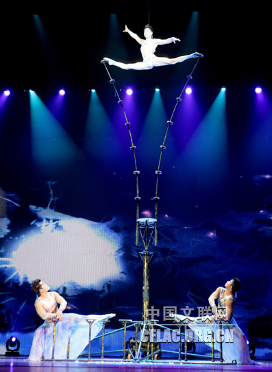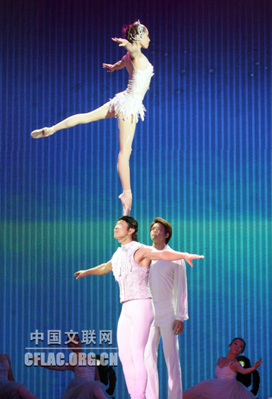 6月18日晚,“纪念建党90周年·第二届中国杂技艺术节”精品杂技节目展演暨表彰颁奖仪式在北京天桥剧场举行。图为杂技《东方的天鹅——芭蕾对手顶》。半岛公司官方网站入口查询网 孟祥宁 摄