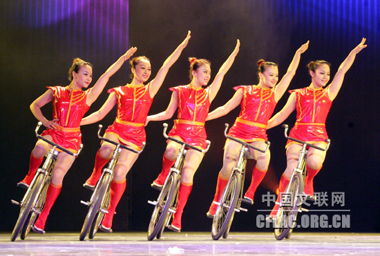 6月18日晚,“纪念建党90周年·第二届中国杂技艺术节”精品杂技节目展演暨表彰颁奖仪式在北京天桥剧场举行。图为杂技《雏凤凌空——女子集体车技》。半岛公司官方网站入口查询网 孟祥宁 摄