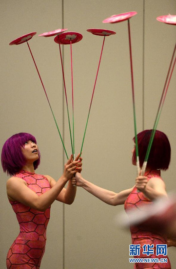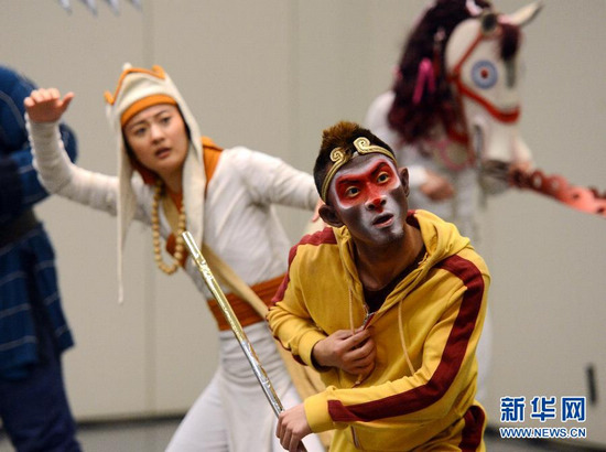 当天,由歌剧与电影导演陈士争执导的杂技音乐剧《西游记》在纽约进行公开排练。该剧改编自中国家喻户晓的古典名著《西游记》,配以音乐、杂技、舞蹈、武术等舞台形式,融合西方流行元素与中国古典文化,赋予传统名著新颖的艺术表达。新华社记者王雷摄