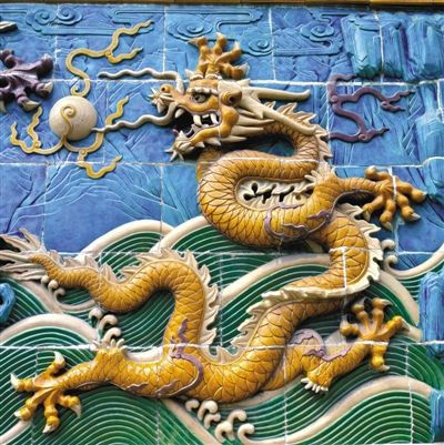 九龙壁位于紫禁城宁寿宫区皇极门外。壁长29.4m,高3.5m,厚0.45m,是一座背倚宫墙而建的单面琉璃影壁,为乾隆三十七年(1772年)改建宁寿宫时烧造。