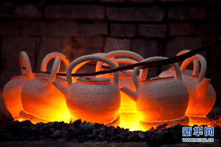 这是刚刚出窑的青砂器(2010年9月3日摄)。青砂器是河北省张家口市蔚县的一种传统手工艺制品,已有300多年的历史。当地出产的砂锅、砂壶、砂吊等器皿,以物美价廉、用途广泛、性能特殊而久负盛名。青砂器是用当地人称“甘子土”的原材料经过1400摄氏度高温烧制而成的,这种土有砂性,细碾过滤后,细腻、柔软、可塑性强,具有单一配方成型的特性。蔚县砂器造型朴素大方、轻巧,通常比其他地方的砂器要薄,其制作过程精细,重工艺、重技巧、重火候。烧成的器皿呈蓝灰色,愈用愈亮,具有煮食品、药物不变质、不变色、不变味的特点。蔚县生产青砂器历史悠久,明清时期,皇宫里就用蔚县砂壶,为皇上、大臣熬煎中药。但是随着社会的发展,这种砂器与现代各种器皿相比不够美观,市场需求越来越少,现仅存蔚县南留庄镇白河东村一两家烧制青砂器的作坊,且出产量越来越少,这一传统工艺面临失传的境遇。
