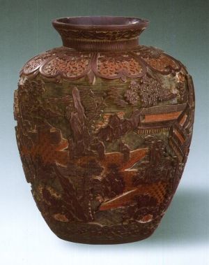 清代三色雕漆人物(图)
