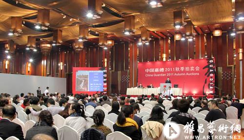 2011年11月14日下午16:00,中国嘉德2011秋拍“万紫千红总是春——新中国水墨探索之路”在北京国际饭店会议中心举槌。经过近3个小时的激烈竞投,该专场成交额达2.26亿元人民币。其中李可染《丹霞枫林》以3680万拔得全场头筹。