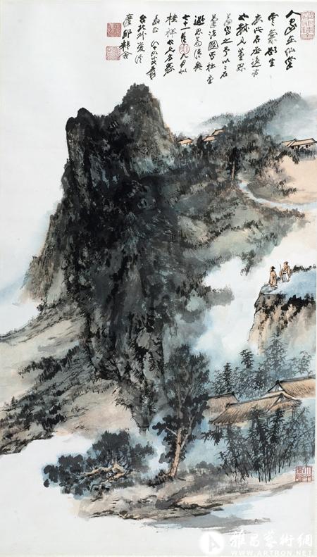 张大千 高士观云 设色纸本 镜框 104.5×59.5cm