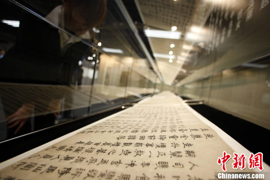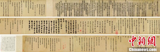12月3日,堪称国宝的元人书法长卷《瑞鹤诗》在北京匡时秋拍夜场以1.012亿元成交。据北京匡时国际拍卖有限公司董事长董国强介绍,此件从美国旧金山征集来的拍品,为上海最后一任道台蔡乃煌后人所珍藏。中新社发 杨可佳 摄