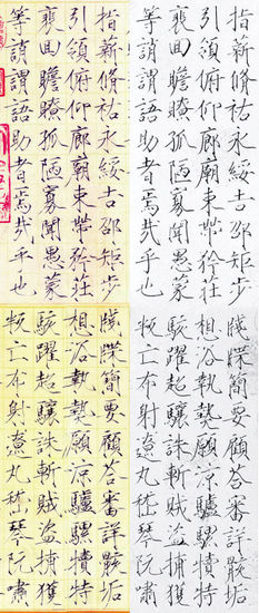 临摹可以形似,而神拟绝不可能。早报记者昨天对比上海博物馆藏《千字文》与此次拍卖的《千字文》,可以看到明显的区别,对于上海博物馆藏《千字文》,诚如书画鉴定家杨仁恺先生所云:“其结体疏朗端正,下笔尖而重,行笔细而劲,撇捺出笔锋而利,横竖收笔顿而钧,整体道丽瘦硬。”而拍卖的这件《千字文》,用笔浮滑轻飘,局促小气,随处可见,而转折处交代不清,所有的捺都软弱无比。