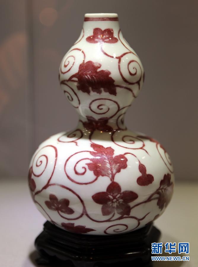 保利进驻香港后首场大型拍卖会24日举行这是保利香港秋季拍卖会大型公开预展上展出的清康熙釉里红子孙万代葫芦瓶,估价为300-500万港币(11月23日摄)。保利香港拍卖行将于本月24日至25日在香港举行2012年秋季拍卖会。这是保利进驻香港后首场大型拍卖会,共呈现400多件书画、古玩、现当代艺术及珠宝名表,总估值达4亿港元。(新华社记者 李鹏 摄)