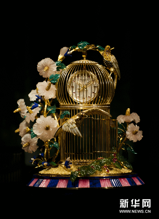 (1)这是百达翡丽“金丝鸟笼”座台钟,估价300万至500万港元(2月26日摄)。