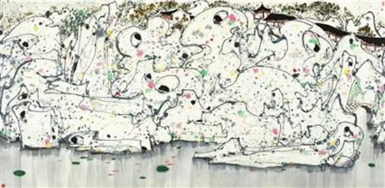 吴冠中《狮子林》1988年作144×297cm设色纸本