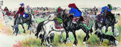 黄胄 《欢腾的草原》 纸本设色 142×360厘米 1981年