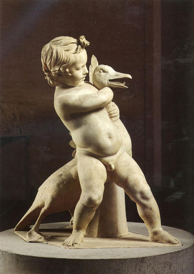 波厄多斯生活在公元前3世纪,正是希腊化风俗性雕塑发展的时代,几乎触及到生活的各方面,从超凡脱俗的神性,开始表达最普遍的人性。特别重视真实地塑造人物形象,注重人的内在精神表现。从这个天真活泼的幼儿抱着有生命的鹅可见雕刻家对生活和人的理解,这是一组活灵活现的儿童生活雕像。雕刻技艺圆满、完美高超。
