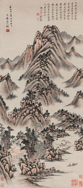 黄公望(1269~1354),元代画家。本姓陆,名坚,汉族,江苏常熟人。后过继永嘉(今浙江温州)黄氏为义子,因改姓名,字子久,号一峰、大痴道人。擅画山水,师法董源、巨然,兼修李成法,得赵孟頫指授。所作水墨画笔力老道,简淡深厚。又于水墨之上略施淡赭,世称“浅绛山水”。晚年以草籀笔意入画,气韵雄秀苍茫,与吴镇、倪瓒、王蒙合称“元四家”。擅书能诗,撰有《写山水诀》,为山水画经验创作之谈。存世作品有《富春山居图》《九峰雪霁图》《丹崖玉树图》《天池石壁图》等。