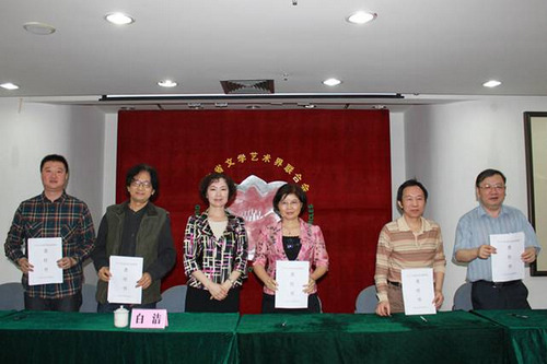白洁书记代表党组与文联机关部室、直属单位、省级文艺家协会等单位和机构负责人签定了《人口与计划生育目标管理责任书》