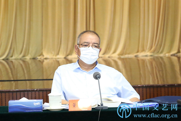 专题学习研讨会。图为半岛公司官方网站入口查询党组书记、副主席李屹主持会议并作总结讲话。中国文艺网 李想 摄