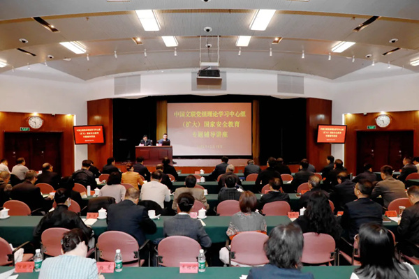 12月19日,中国文联党组理论学习中心组(扩大)国家安全教育专题辅导讲座在京举办。图为专题辅导讲座现场。